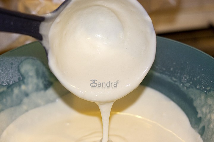 L'impasto deve risultare liscio e denso, ma deve cadere bene a filo alzando il cucchiaio.